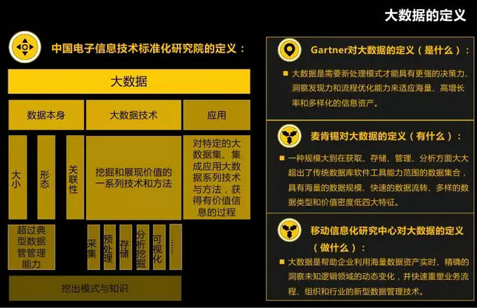 大數據(big data)目前已然成為IT行業中最時髦的詞匯,然而真正了解大數據的人卻不多。大數據的含義可不是僅僅數據量大,很多人對大數據的概念有所誤解,想要從概念上把大數據講清楚就得從理論上講大數據的特征,比如4V(數據體量巨大Volume、數據類型繁多Variety、價值密度低Value、處理速度快Velocity),那就要用到很多理論性和學術性的語言和詞匯,相信會把大家越說越糊涂,我在寫大數據應用開發工程師專業課程的時候,就想寫一篇文章來告訴大家大數據是什么,卻總是組織不起那種能讓外行人秒懂的語言,就先把技術上的學習內容給發了,沒有學過編程的同學直接看Hadoop學些什么Spark學些什么應該難以理解。我是技術出身并不善寫作,我決定就寫一些我知道的大數據在方方面面的應用實例來向大家說明大數據的含義,在這里還請大家諒解我的寫作水平。